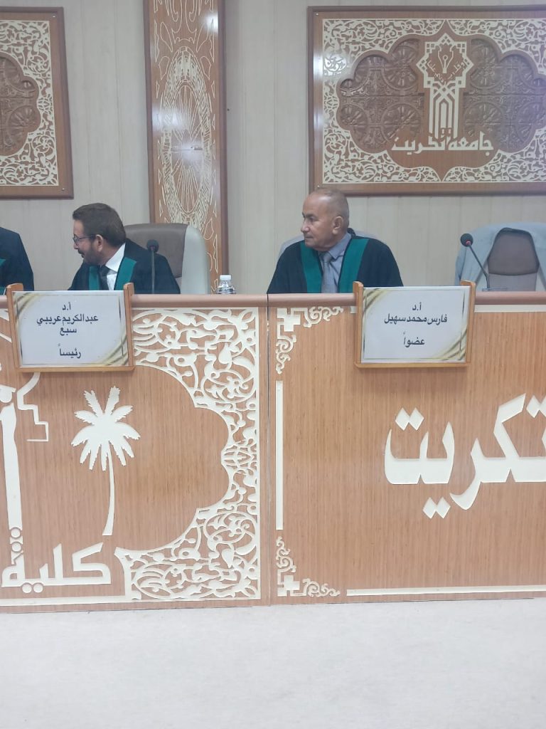 ضمن أطر التعاون العلمي المشترك بين الجامعات العراقية، شارك الأستاذ الدكتور فارس محمد سهيل، التدريسي في كلية الزراعة – جامعة [اسم الجامعة]، في عضوية لجنة مناقشة أطروحة الدكتوراه الموسومة: