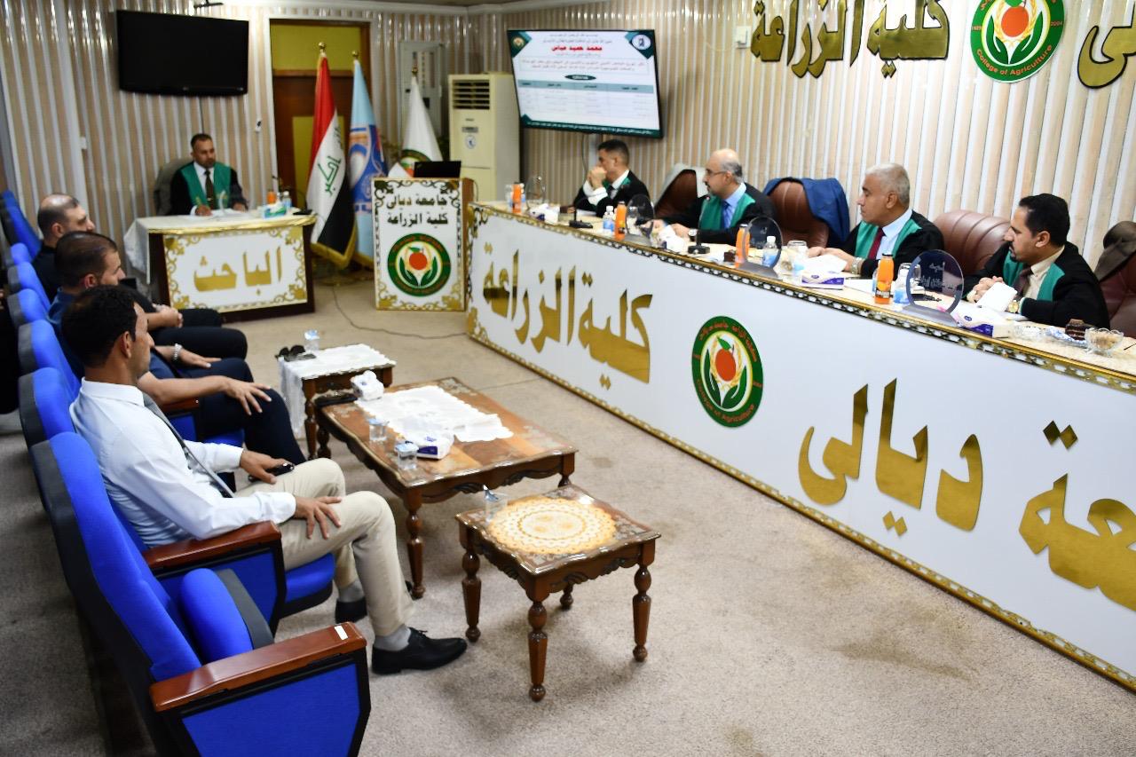 The Dean of the College of Agriculture at the University of Diyala, Professor Dr. Raed Ibrahim Khalil, chaired the committee for the defense of a master’s thesis held at our college. The thesis is entitled: