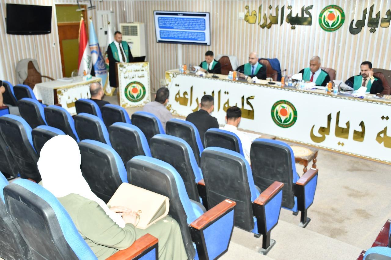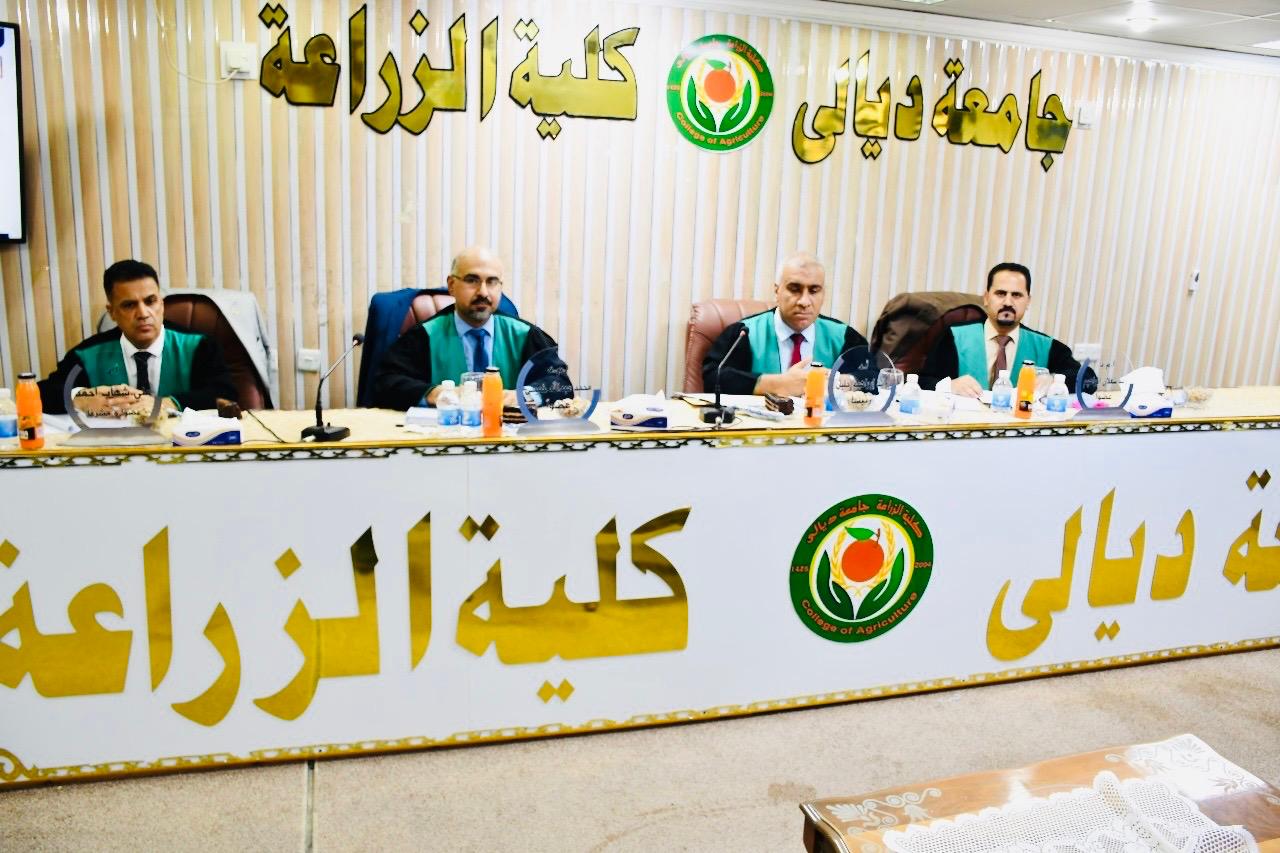 The Dean of the College of Agriculture at the University of Diyala, Professor Dr. Raed Ibrahim Khalil, chaired the committee for the defense of a master’s thesis held at our college. The thesis is entitled: