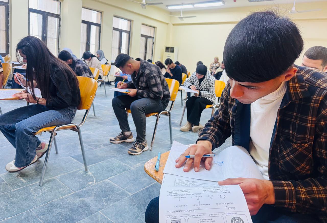 واطّلع السيد العميد خلال الجولة على طبيعة الأسئلة وآلية توزيع الدفاتر الامتحانية وتنظيم القاعات، مؤكداً أهمية تهيئة الأجواء المناسبة التي تضمن أداء الطلبة لامتحاناتهم بكل انسيابية وهدوء، وبما يعكس حرص الكلية على تطبيق معايير الجودة والشفافية في التقييم الأكاديمي.