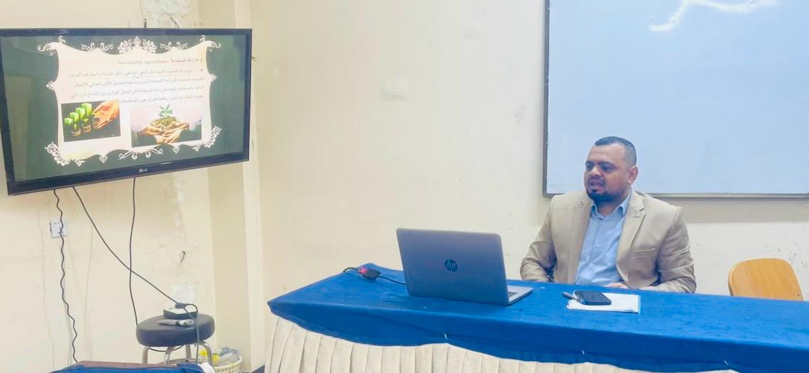 وتطرّق المحاضر إلى التحديات التي تواجه القطاع الزراعي، لاسيما ما يتعلق بتدهور التربة وشح الموارد المائية وتأثيرات التغير المناخي، مؤكداً ضرورة تبني ممارسات زراعية صديقة للبيئة تسهم في تحسين الإنتاجية مع الحفاظ على الموارد للأجيال القادمة.