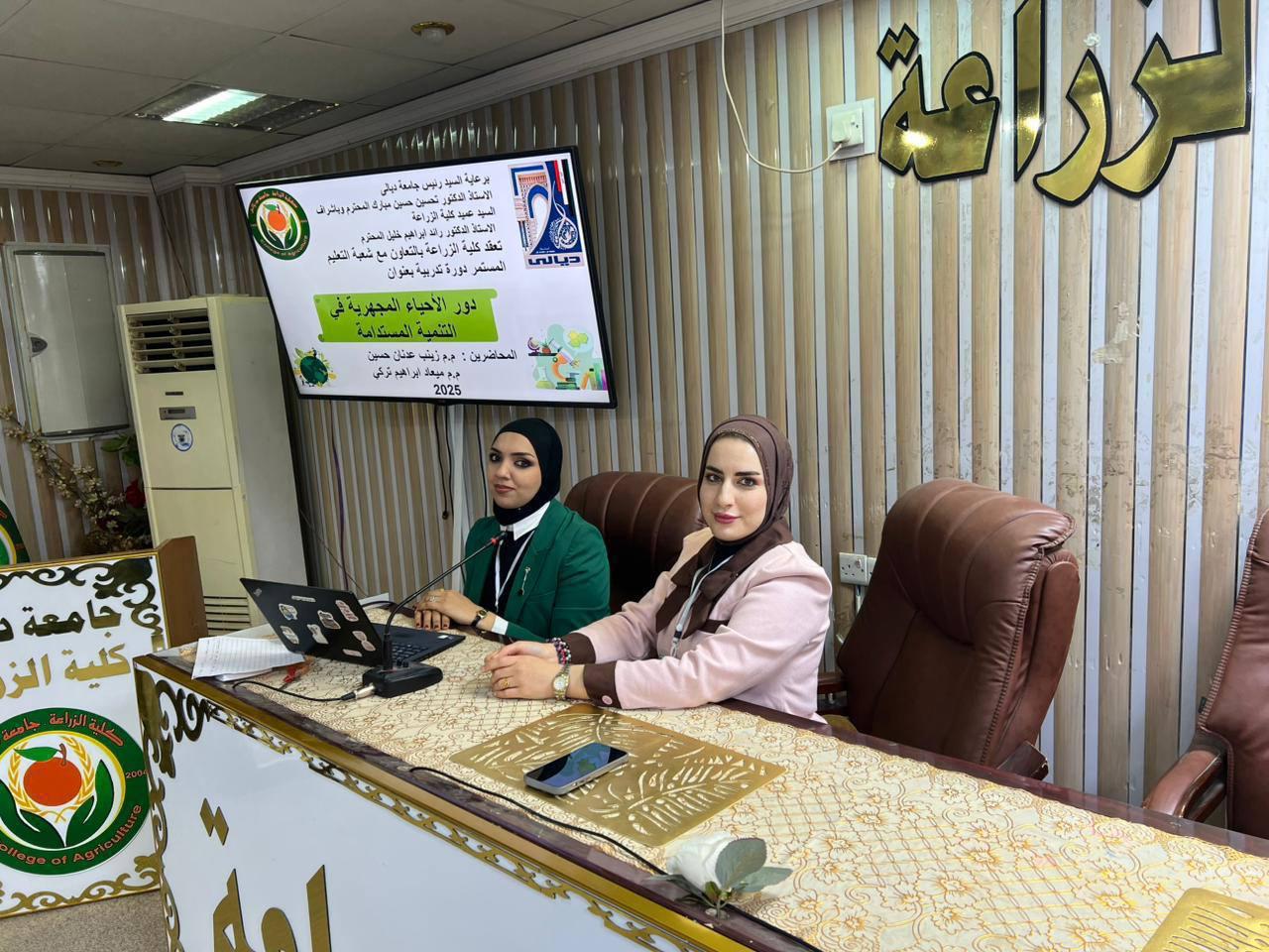 ضمن إطار أنشطة كلية الزراعة بجامعة ديالى. في دعم البحث العلمي وتطوير المهارات التطبيقية للطلبة والباحثين، نظم قسم علوم التربة والموارد المائية دورة تدريبية متخصصة بعنوان (الأحياء المجهرية في التنمية المستدامة)، والتي هدفت إلى تعزيز المعارف الحديثة حول توظيف الكائنات المجهرية في تحسين الإنتاج الزراعي وحماية البيئة.