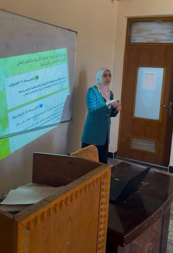 اقام قسم علوم التربة والموارد المائية في كلية الزراعة بجامعة ديالى وبالتعاون مع وحدة التاهيل والتوظيف والمتابعة ندوة بعنوان (الاستراتيجية الوطنية للتربية والتعليم العالي). حاضرت فيها المدرس المساعد نور حاتم خورشيد.