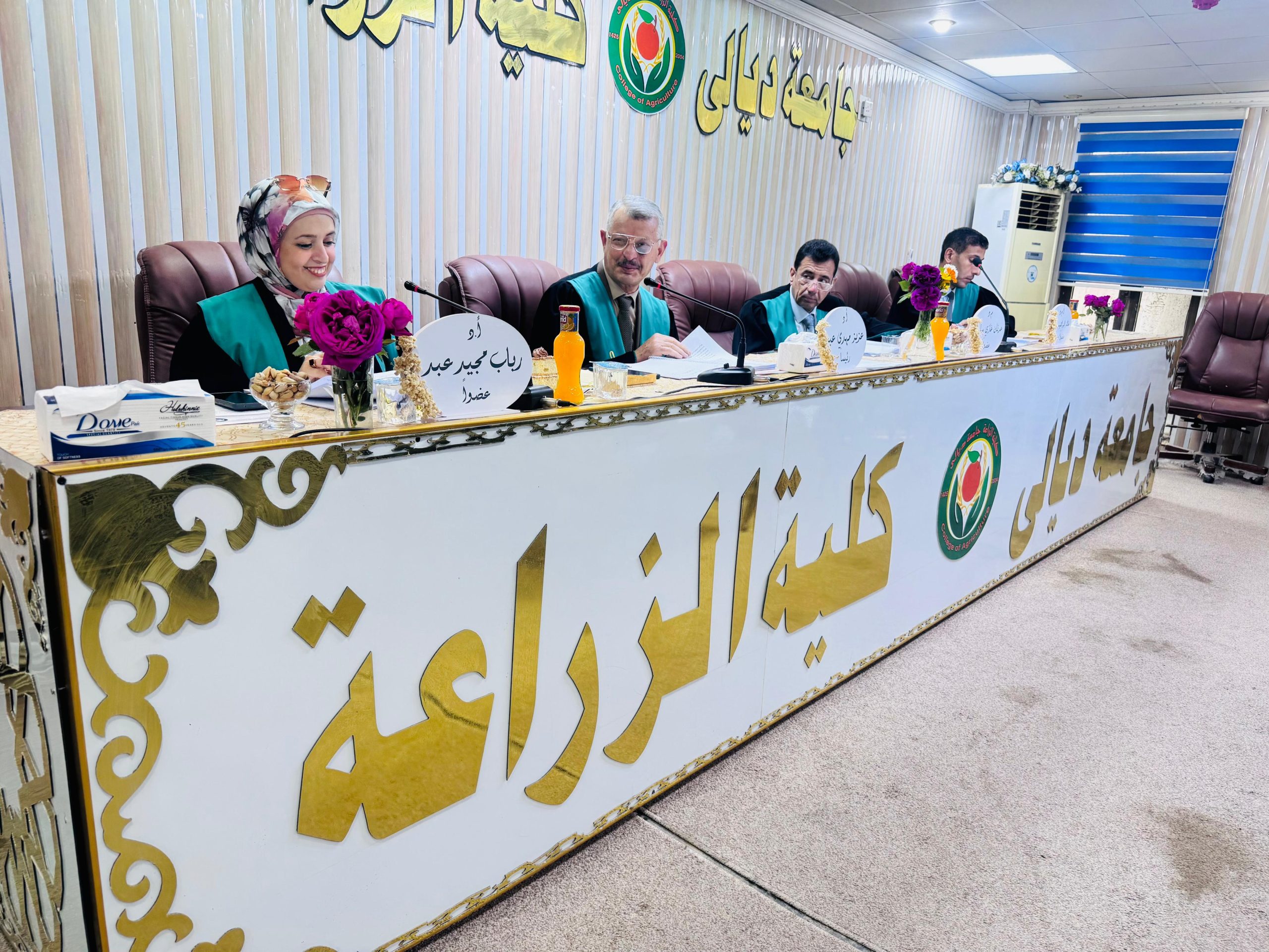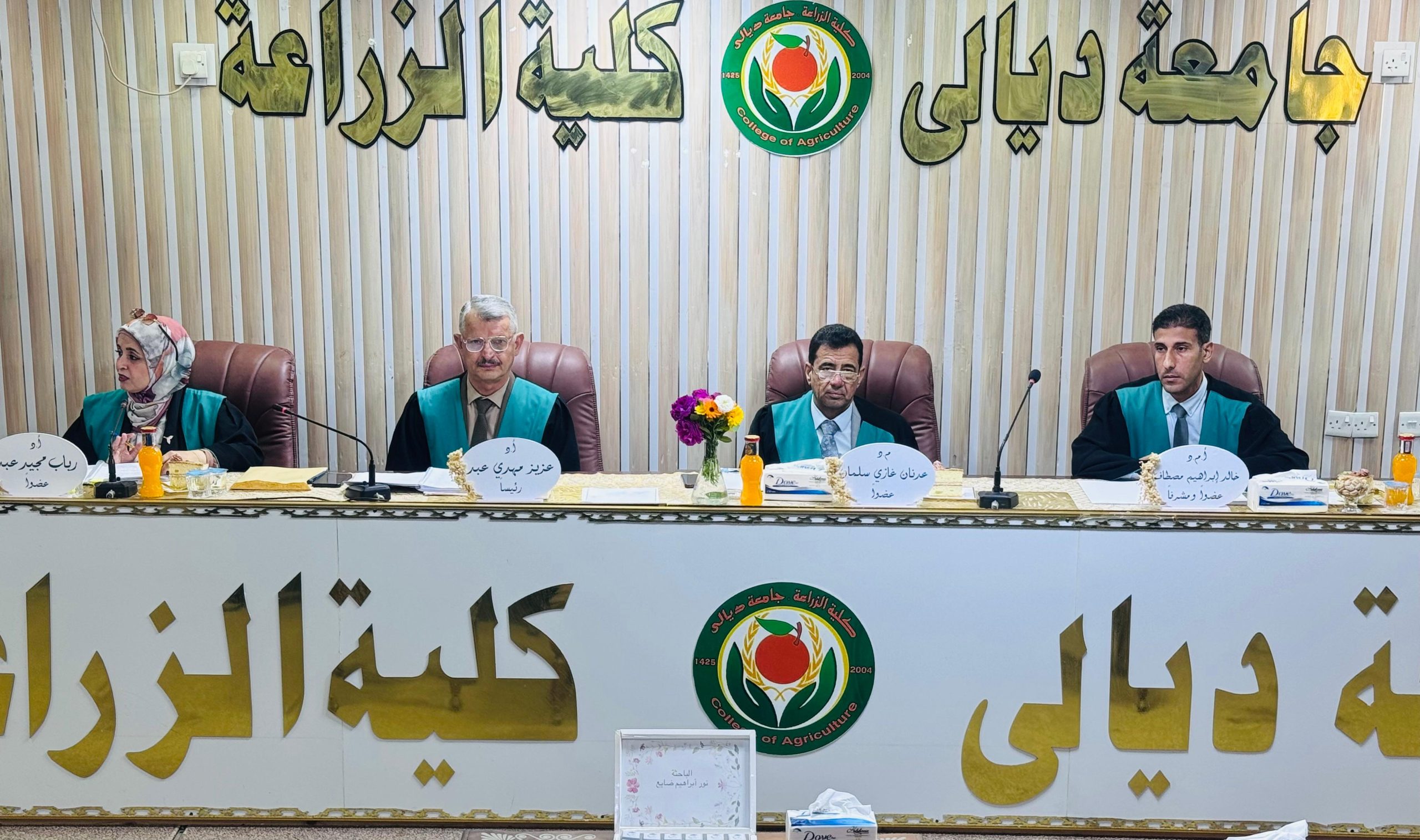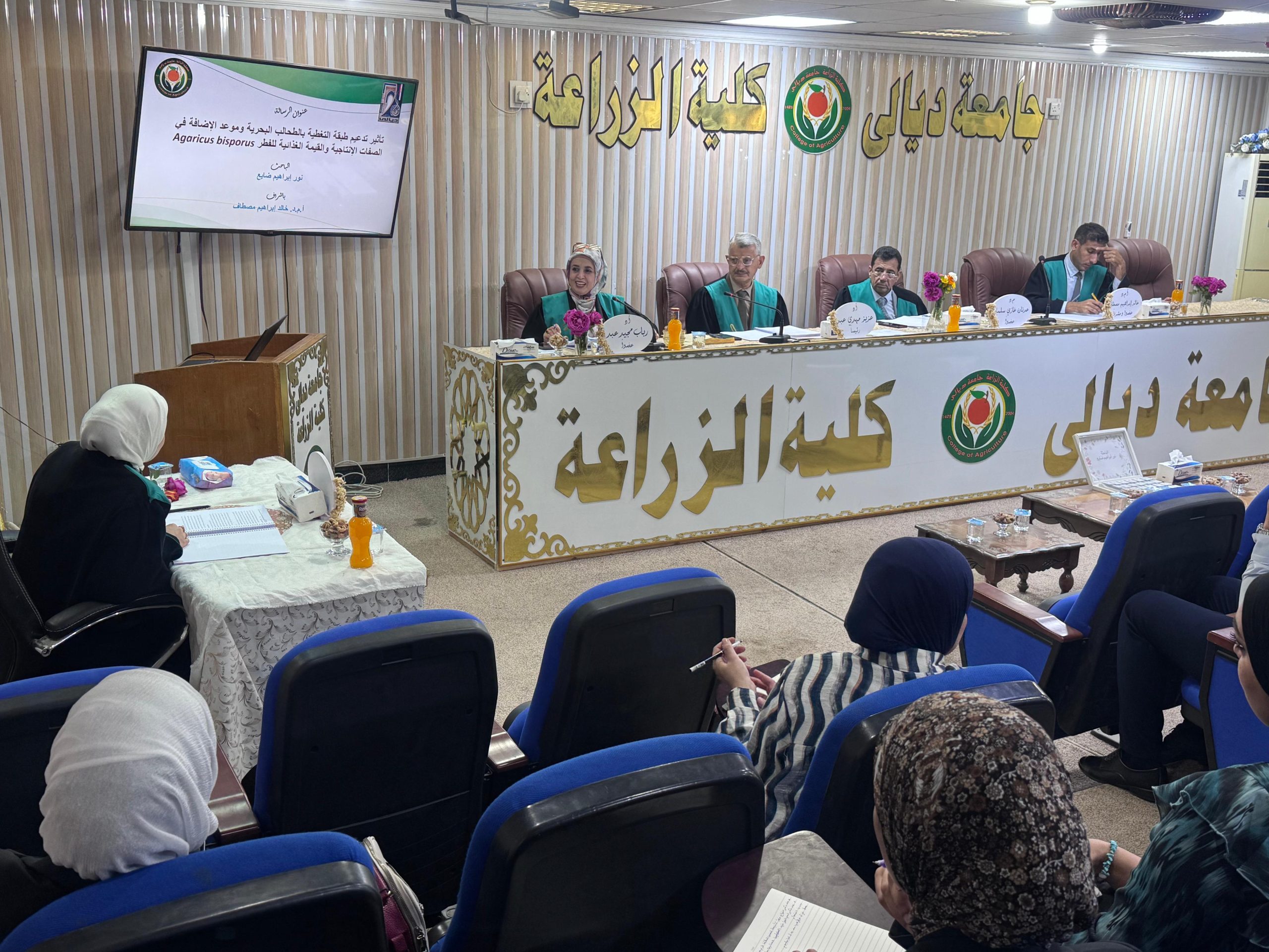 ناقشت كلية الزراعة بجامعة ديالى رسالة الماجستير الموسومة (تأثير تدعيم طبقة التغطية بالطحالب البحرية وموعد الإضافة في الصفات الإنتاجية والقيمة الغذائية للفطر Agaricus bisporus).